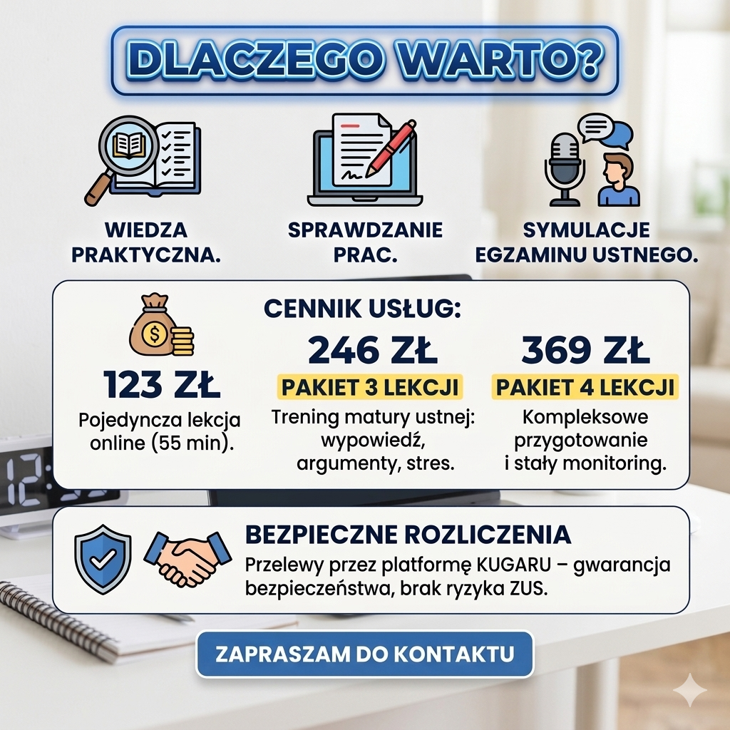 Łączę pasję do literatury z egzaminacyjną precyzją.
